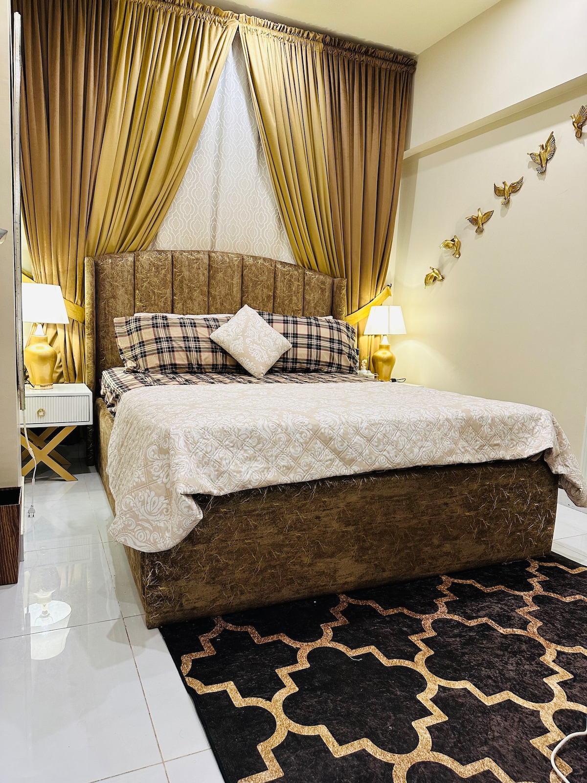 A cozy, fully furnished apartment equipped with all essentials to make you feel at home. Enjoy fresh luxury comforters, soft pillows, and modern amenities for a relaxed stay. Centrally located in Karachi’s most posh and family-friendly area, just 4 minutes from the beach. Surrounded by a variety of restaurants, cafés, shopping malls, and salons. Safe building and neighborhood, perfect for families and long stays.