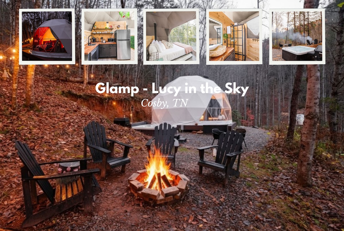 Don’t just visit the mountains and find a place to stay. Enjoy a full luxury-glamping experience in a one-of-a-kind romantic geodesic dome overlooking the Smoky Mountains and make memories that will last a lifetime. ⭐️Located on 4.5 acres surrounded by mountains and wooded views ⭐️Equipped with: Hot tub Outdoor fire pit (& s’mores fixings) Indoor fireplace Private hiking trail to a two-person hammock with an even more stunning mountain view.