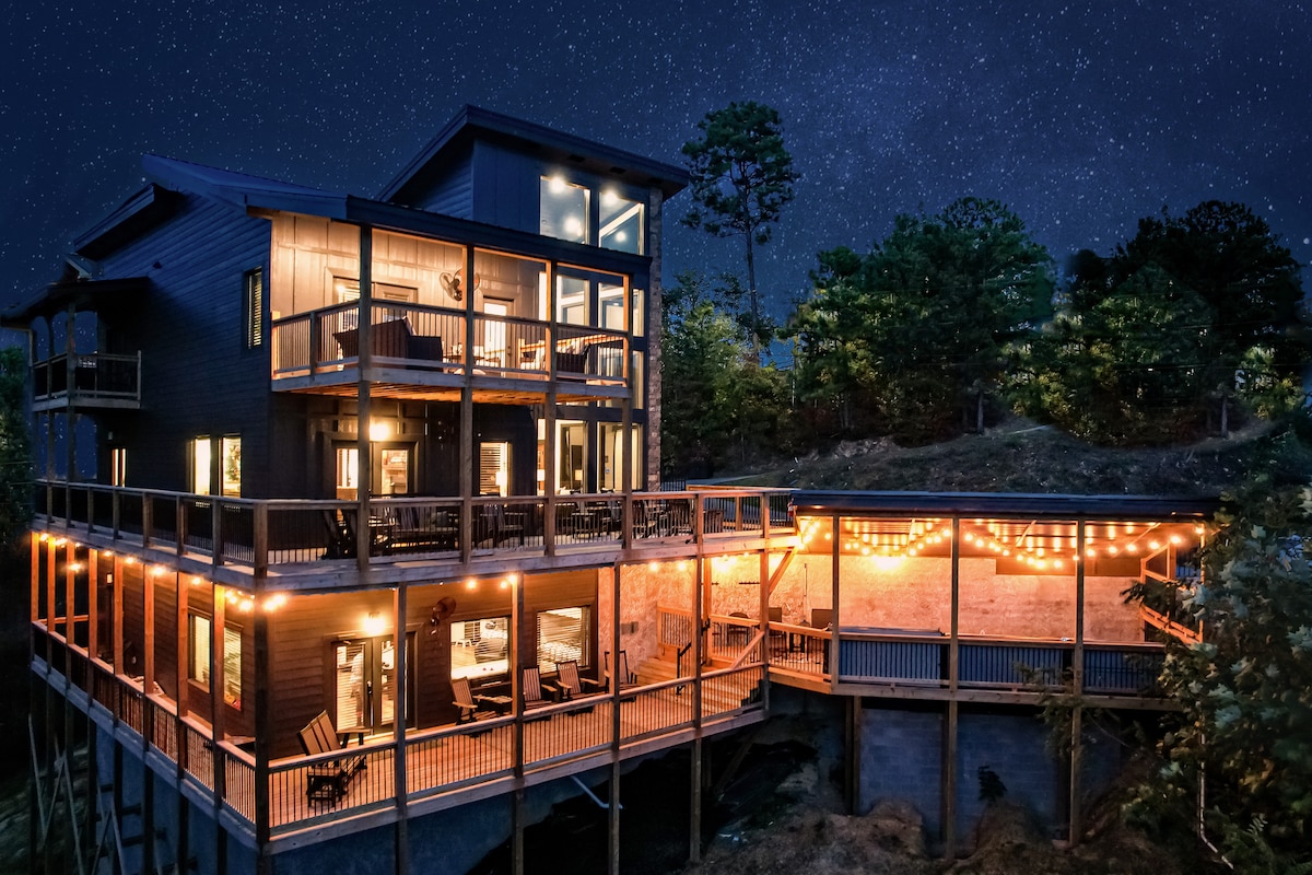 Nestled in Sevierville’s prestigious Walden’s Ridge, this exceptional Smoky Mountains vacation rental blends refined luxury with immersive entertainment. Enjoy panoramic views, a private resort-style pool with waterslide & waterfall, and a golf/multi-game simulator. Vetted for Airbnb LUXE, this newly built ~6500 sqft, 7-bedroom, 7.5-bath home sleeps up to 26. Ideal for families, groups, wedding guests. corporate retreats, and multigen. Near Dollywood and Great Smoky Mountains National Park.