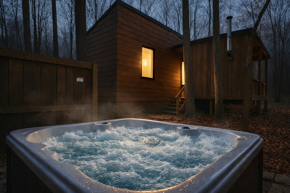 Creekside Retreat:时尚小屋+露营车、热水浴缸