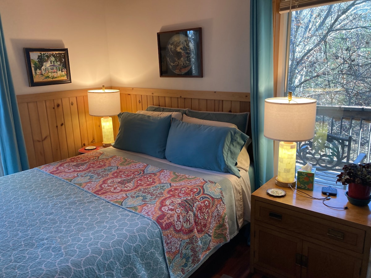 We offer self-check-in for everyone's convenience. We are still committed to Airbnb’s cleaning protocol. Hikers, business travelers, nurses, Biltmore and brewery enthusiast welcome! We can supply maps for hiking. End of road, bedroom/bath behind home, exterior entrance, tile shower, 15 min to Asheville, 8 min Weaverville, 18 min to the Blue Ridge Parkway, 5 min to Ledges River Park on the French Broad River. The bedroom is 11x14, plus bath, amenity storage & deck.
