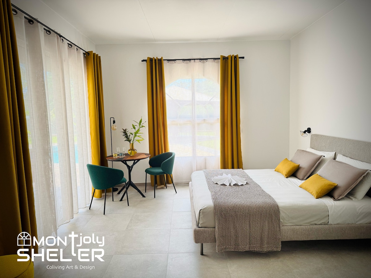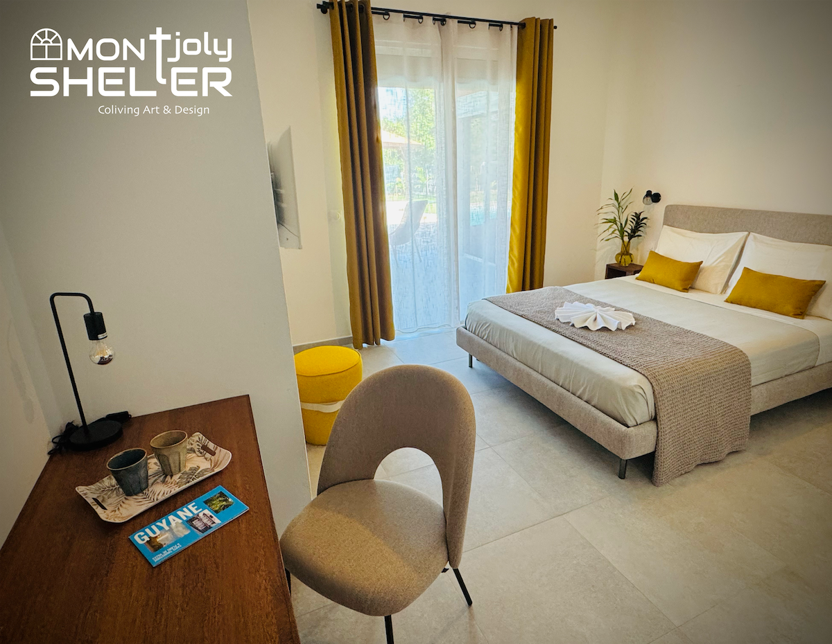 À deux pas de la Plage des Salines, au cœur d'un des quartiers les plus prisés de Rémire-Montjoly, cette chambre CONFORT de 18m² offrira un cadre unique et exclusif à une clientèle d'affaires et de tourisme exigeante. Ici, tout a été pensé pour recevoir: hauteur sous plafond, volumes généreux, lumière naturelle... sans oublier l'accueil personnalisé. Et le véritable privilège? Un jardin bercé par les alizés avec piscine et espace carbet, où l'art de vivre rime avec authenticité et hospitalité.