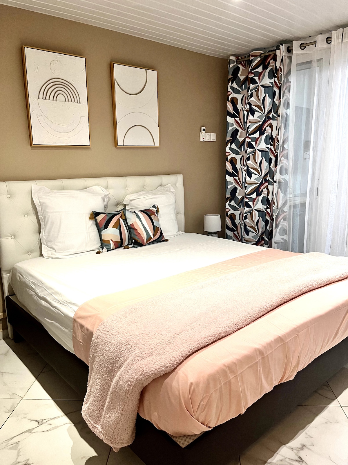 Profitez d'un logement élégant, lumineux et central, proche de toutes commodités à pied: restaurants, supérettes, boulangerie, espaces verts, espace co-working, université, plage. Situé entre deux axes centraux, cet appartement donne le privilège de la proximité de la ville tout en conservant le calme et la tranquillité. Ressourcez-vous dans ce véritable nid douillet climatisé, qui vous offrira un grand confort: avec une literie de qualité supérieure, la WIFI Fibre, une TV connectée.