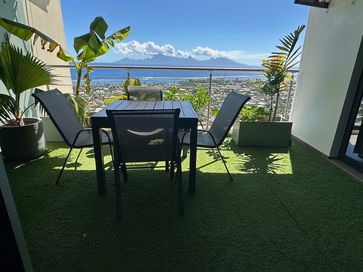 Appartement spacieux et moderne, entièrement équipé et climatisé. Il possède une grande terrasse aménagée avec une vue imprenable sur la mer, le port de Papeete et la montagne. Il est idéalement situé à Papeete au 3e étage d'une résidence récente et sécurisée avec piscine, à 5 mn de l'aéroport, à 7 mn du centre-ville et de ses principales attractions (la place Toata et ses restaurants, la promenade du front de mer, les roulottes de la place Vaiete, le marché de Papeete, le quai des ferrys, etc.)