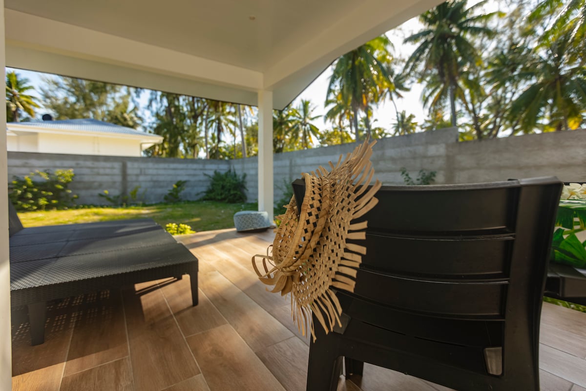 Posée au bord de la mer, cette belle petite maison offre un accès direct et une vue magnifique sur le lagon. La maison se compose d’une chambre à coucher climatisée (Lit Queen size), 1 salle de bain, 1 salon (possibilité d’y faire coucher 1 ou 2 enfants) et 1 cuisine. Cet espace privé est idéal en amoureux ou en famille !! Un deck extérieur ouvert avec table et chaises, permet d’apprécier l’air marin et des repas en famille avec une splendide vue sur le large.