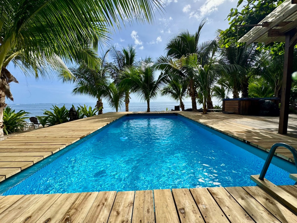 Bungalow duplex indépendant, bord de mer, situé dans une propriété privée. 1 chambre climatisée avec 1 grand lit 2 places + 1 canapé-lit. Un espace cuisine et salle de bain. Terrasse privative exterieure dans jardin bord de l'eau. 2 kayaks à disposition pour accéder au banc de sable à 100 mètres du faré et au spot de surf de Taapuna, à 800 m. Aéroport international /inter-îles à 10 minutes en voiture. Supermarché ouvert 24h/24 à 10 minutes à pieds. Restaurants, snack et roulottes à proximité.