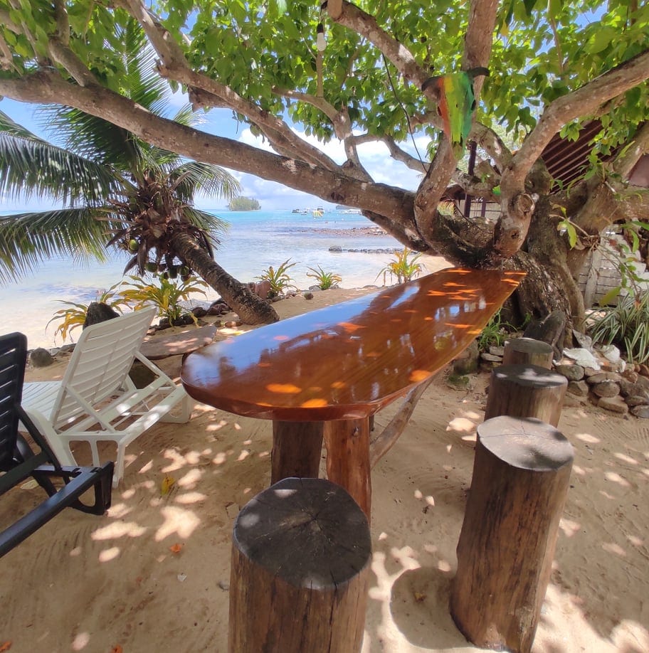TIKI MOZ bungalow+maison c'est: - une grande maison équipée pour 6 à 8 personnes - ainsi qu'un bungalow pour 2 personnes - une plage aménagée privée équipée de kayaks, barbecue, transats, hamacs - situé à Tiahura pas loin du centre de Tiahura et des 2 motus (îlots).