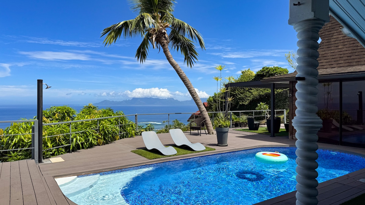 Maison de 120 m2 toute équipée appelant au calme et la sérénité devant une vue magnifique sur le lagon et l'ile soeur au bord de la piscine. Cadre paradisiaque avec grande terrasse et piscine au même niveau. Grande cuisine Américaine donnant sur la terrasse. Située sur les hauteurs de Punaauia qui vous garantira un climat frais tout au long de l'année. A 10 Mn de la plus belle plage de sable blanc de l'ile, proche de nombreux restaurants et commerces. Voiture indispensable.