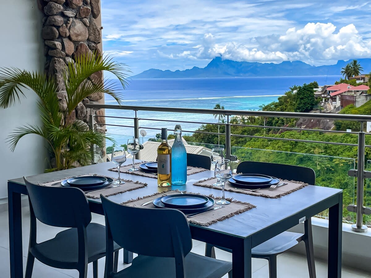 Our charming 85m² house and its 22m² terrace offers you a breathtaking view of the magnificent island of Moorea. You can relax in comfortable spaces, while having the possibility of working thanks to a motorized desk and a second screen for a dual display with your laptop. The good internet connection will allow you to stay connected to your work. Come and live a unique experience in this house where comfort and vacation go hand in hand.