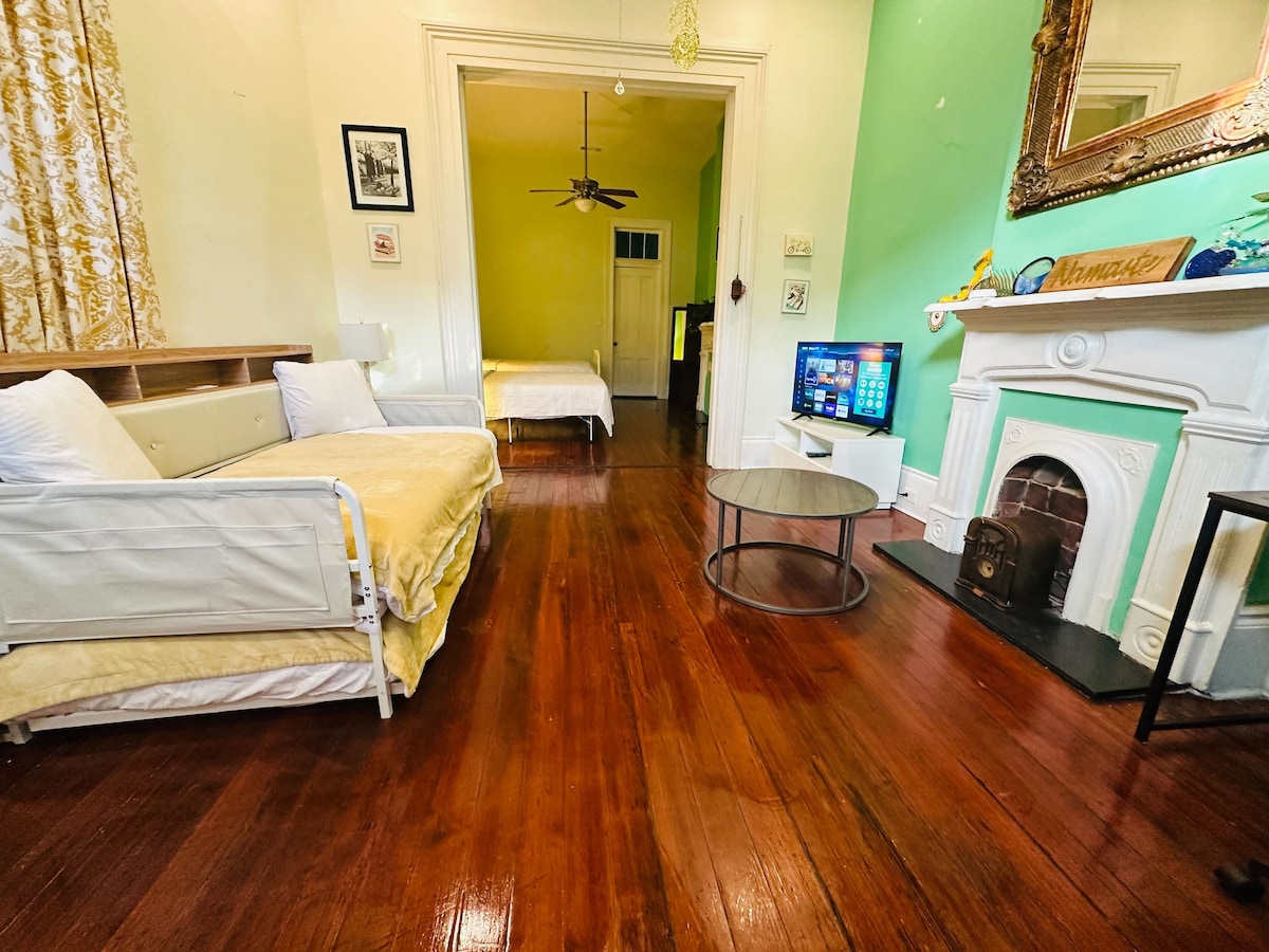 This "Only in New Orleans" first-floor unit, circa 1875, has outstanding architectural details, and is well appointed with new and vintage furniture. Excellent Lower Garden District location, steps to MoJo Coffee House. Very walkable neighborhood with parks, bars, restaurants, bike share, coffee shops. Close to Convention Center (0.8 miles), French Quarter (1.4 miles), Superdome (1.6 miles), Warehouse/Arts District (0.7 miles), Uptown and Jazz Fest (4.7 miles). Don't miss it.