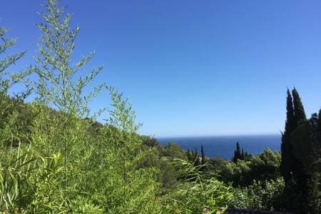 Villa en retrait de la Corniche, entièrement rénovée par architecte, avec magnifique vue mer. Grands volumes, très lumineuse, posée à 50m de la grande bleue (accès direct par escalier), elle surplombe un petit jardin de restanques. Grande terrasse face à la mer. Possibilité de se garer juste devant la maison pour charger votre véhicule, et à quelques mètres de là pour un stationnement longue durée (gratuit). Pendant les vacances scolaires, les réservations à la semaine sont prioritaires.