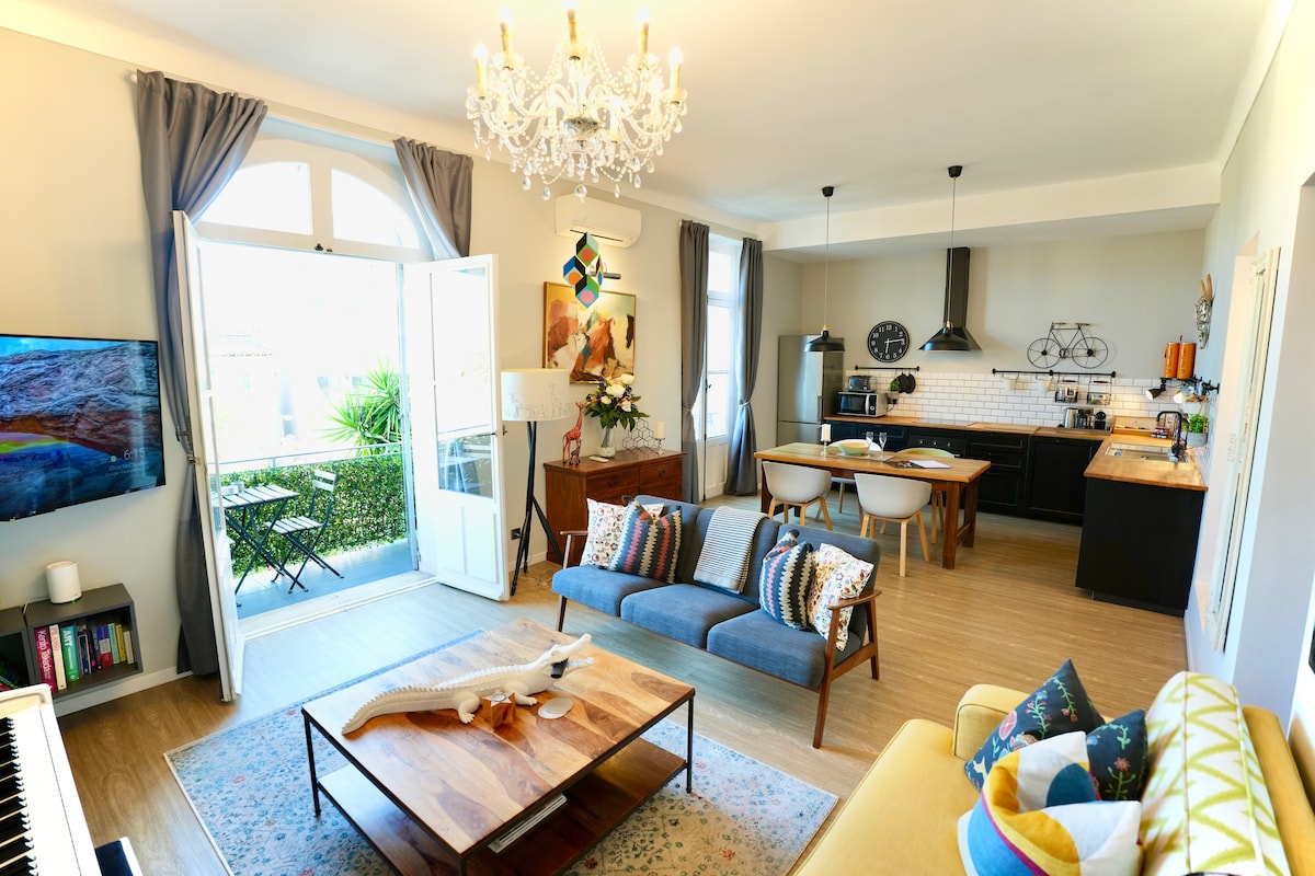 卡西斯中心大型2室公寓,带阳台,私人停车场