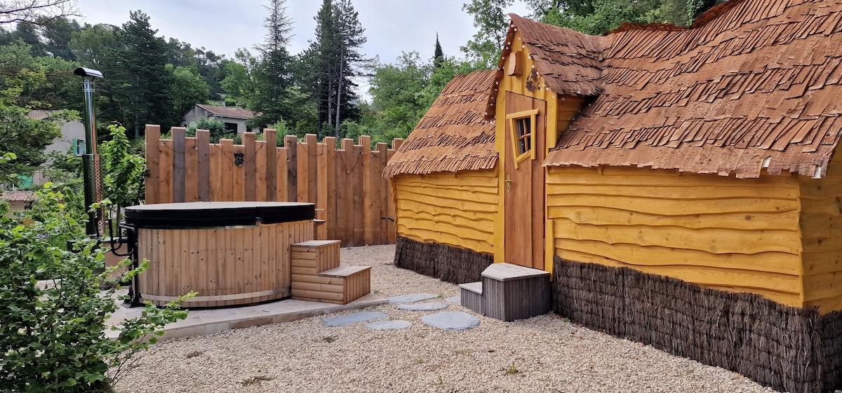 带按摩浴缸和温水泳池的浪漫小屋
