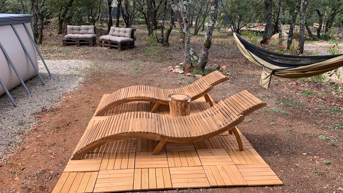 Dépend Bohème 2 à 4pers p'tit dej inclus PISCINE CHAUF Pâques à la Toussaint A l'écart des propriétaires sur 1,5 ha de nature pour séjours d'1 nuit ou vacances de lacher prise où petits et grands ne se perdent jamais de vue. Partagez en extérieur et en tout confort Cuisine repas 4 saisons chauf tout EQUIPE épicier et frigo privatifs Salon Marocain Biblioth Jeux Fléchettes tir a l'arc Ping-pong Baby-foot Badmin Pétanque Parcours Ninja Tyrolien Trampol VELO SPA SAUNA KAYAK PADDLE 5€/pers/act/j