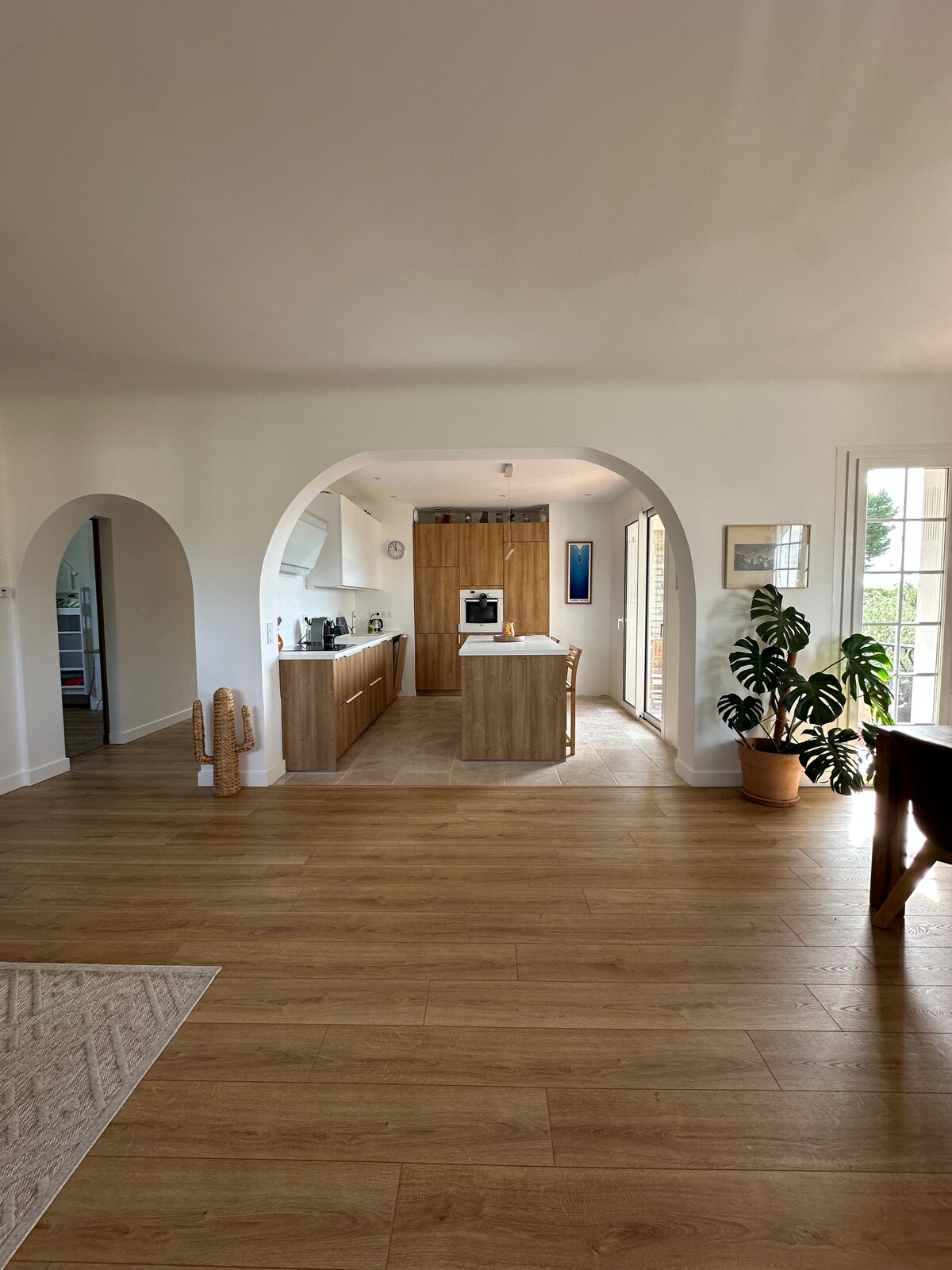 Bright and spacious apartment of 90m² on the 1st floor of a family house, with open sea view and private southern terrace. Located in a quiet environment, just 2.4 km from the beaches and in the immediate vicinity of the trails, it is ideal for savoring a breakfast in the sun or an outdoor evening. Completely independent entrance, secure private parking and full reversible air conditioning for optimal comfort.