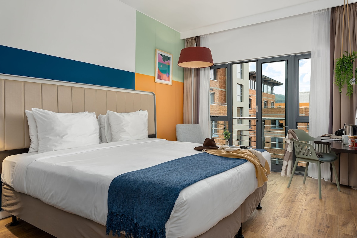 Same comfort, better perspective. Our King Room with Balcony comes with everything you love - a king-size bed, en suite bathroom, Smart TV, bar fridge, and uncapped Wi-Fi. Plus your own private balcony for a breath of fresh air and a front-row seat to Cape Town. Perfect for slow mornings, golden hours, or that last glass before calling it a night.
