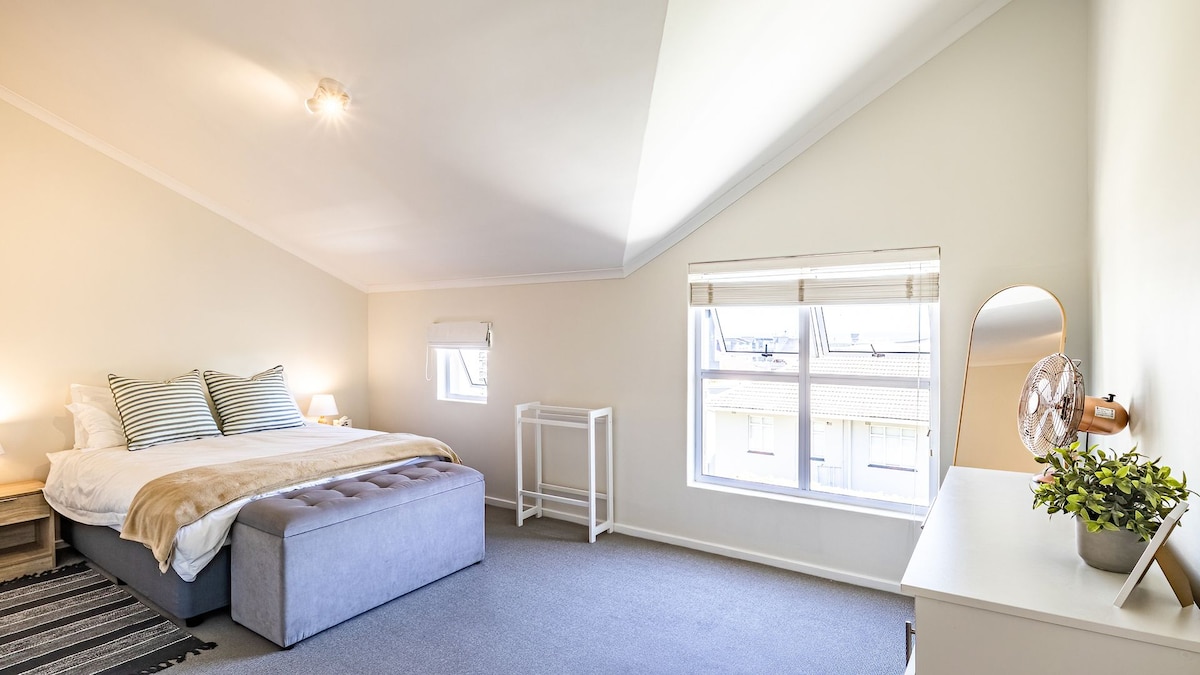 Just up from the Sea Point promenade, this gorgeous Victorian cottage has an ultra-stylish renovated interior. Loft-style mezzanine serves as a third bedroom or a yoga studio or office, or just a peaceful space to retreat. Sea Point's cafes and restaurants are a walk away, and the best of Cape Town's beaches just around the corner. Sunny courtyard for relaxing and evenings on the stoep, while the fireplace keeps you cosy. 2-bed. Extra sofabed in the mezzanine. Safe, free street parking. UPS