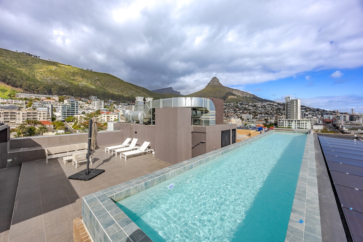 This incredible 2 bedroom apartment offers breathtaking views over both ocean and mountains. It is centrally located near several beaches, restaurants and shops, and is a perfect home for families, couples or business travellers looking to stay in a comfortable, beautiful space. Enjoy breakfast or sundowners on the spacious balcony after a cooling dip in the pool, while preparing your food on the barbecue or in the fully kitted kitchen. This penthouse comes with free parking and fibre internet.