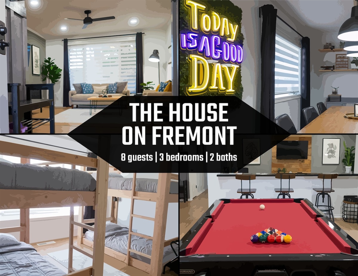 Newly updated 3 bed/2 bath home in Fresno with a pool and cozy outdoor space including a BBQ, fire pit, & lounge set! Comfortably fits 10: Includes 1 King bed, 1 full bed with twin trundle, 2 twin beds, 1 spacious sectional sofa, 1 queen air mattress & pack-n-play. Interior features an office space perfect for those who work remotely during their travels! Great for business professionals, large families, or groups of travelers. Experience Fresno With Us & Learn More!