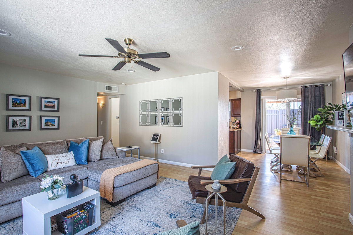 Welcome to our cozy 2 bedroom, 1 ca. king bed and queen, one twin folding bed plus sofa. 1 bath fully remodeled apartment! Enjoy a stocked bathroom and kitchen during your stay. This is a centrally-located place with easy access to highways. Perfect for a family get away and convenient for all business travelers! 15 minutes away from all major hospitals in the Fresno area specifically for health care workers such as Kaiser, Saint Agnes, Valley Children's and Fresno Community.