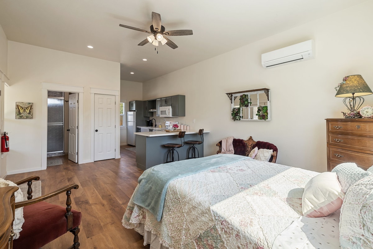 This is a private guesthouse with an ensuite bathroom and full kitchen. The guesthouse features vaulted ceilings, full-size closet, full kitchen, a large queen-size bed, Washer/Dryer, and direct private entrance. The guesthouse is centrally located in Fresno and excellent for guests visiting Fresno State, Save Mart Center events, FAT, Yosemite, Kings Canyon, and Sequoia National Parks. The home is in a Central Fresno neighborhood known as McLane, conveniently off Highway 168 and Shields Ave