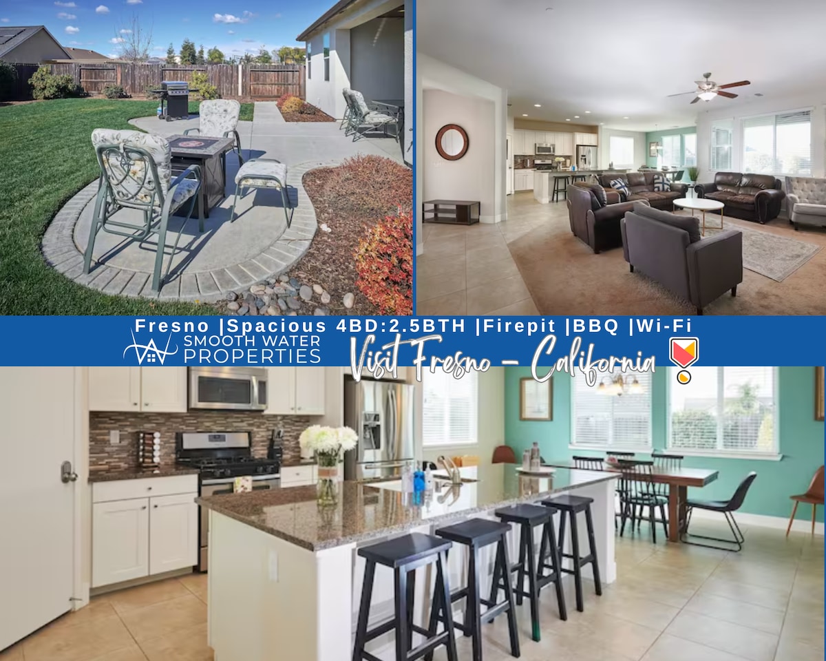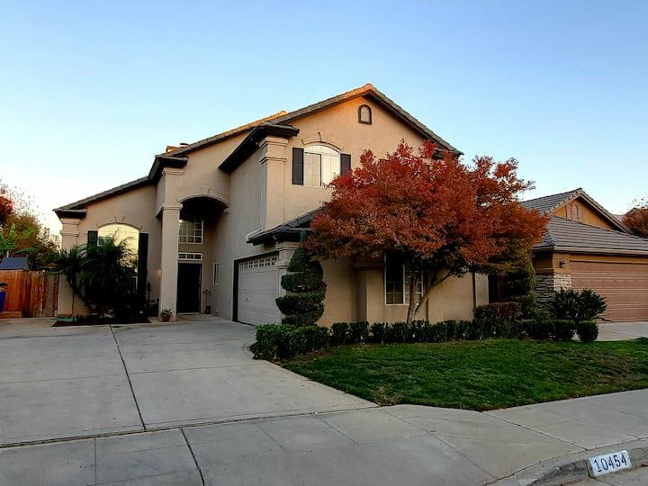 Northeast Fresno—Quiet and safe neighborhood This home is perfect for groups or housing out-of-town family. Sleeps 10-12 comfortably. Near Yosemite (56 miles away). ✔ 2484sq foot Private Home! ✔ Fast WiFi ✔ Garage, driveway and street parking ✔ In-House Laundry with detergent provided ✔ 3 65-inch amazon Smart TVs ✔5 bedrooms, 3 Full Baths Two dedicated workspaces. Fully stocked kitchen for cooking. Ample parking space in the driveway. Perfect for longer stays. NOT suitable for loud parties.