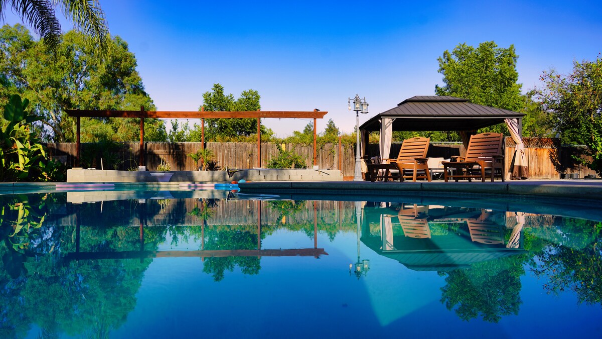 Encompassing three spacious bedrooms, two bathrooms, backyard featuring a swimming pool, brand new hot tub & outdoor dining set the benchmark for NE Fresno grandeur! The entire family-friendly home can comfortably sleep 8 guests. Includes 1 King bed, 1 Queen, 1 Full, queen air mattress & a baby crib. Set over a quarter of an acre, this beautiful home embodies peace & tranquility, ensuring complete privacy. Perfectly suited for business professionals, families, or small groups of travelers!