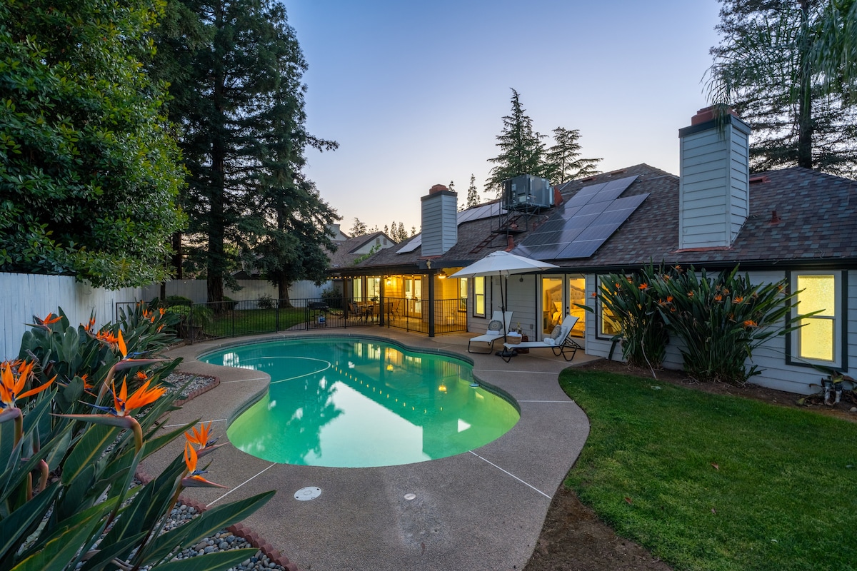 Encompassing three spacious bedrooms, two bathrooms, backyard featuring a swimming pool, brand new hot tub & outdoor dining set the benchmark for NE Fresno grandeur! The entire family-friendly home can comfortably sleep 8 guests. Includes 1 King bed, 1 Queen, 1 Full, queen air mattress & a baby crib. Set over a quarter of an acre, this beautiful home embodies peace & tranquility, ensuring complete privacy. Perfectly suited for business professionals, families, or small groups of travelers!
