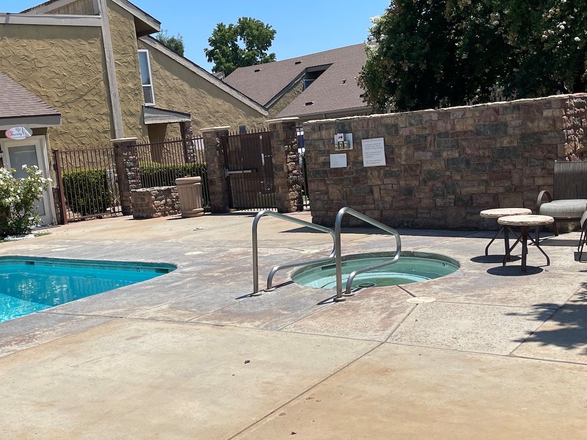 Welcome to our cozy 2 bedroom, 1 ca. king bed and queen, one twin folding bed plus sofa. 1 bath fully remodeled apartment! Enjoy a stocked bathroom and kitchen during your stay. This is a centrally-located place with easy access to highways. Perfect for a family get away and convenient for all business travelers! 15 minutes away from all major hospitals in the Fresno area specifically for health care workers such as Kaiser, Saint Agnes, Valley Children's and Fresno Community.