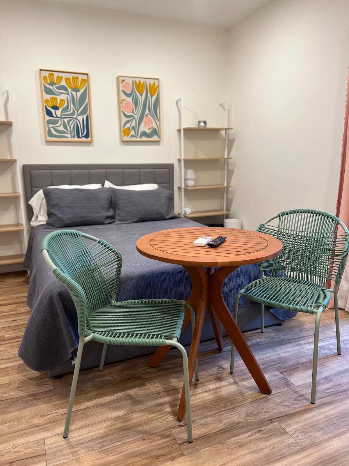 This compact studio apartment has all the necessities, complete with custom furniture pieces and cute decor. Private entrance and self-check in allow you to come and go as you need! You can also make use of the sparkling pool, (weather permitting)! The backyard is a shared space with myself and potentially other guests.