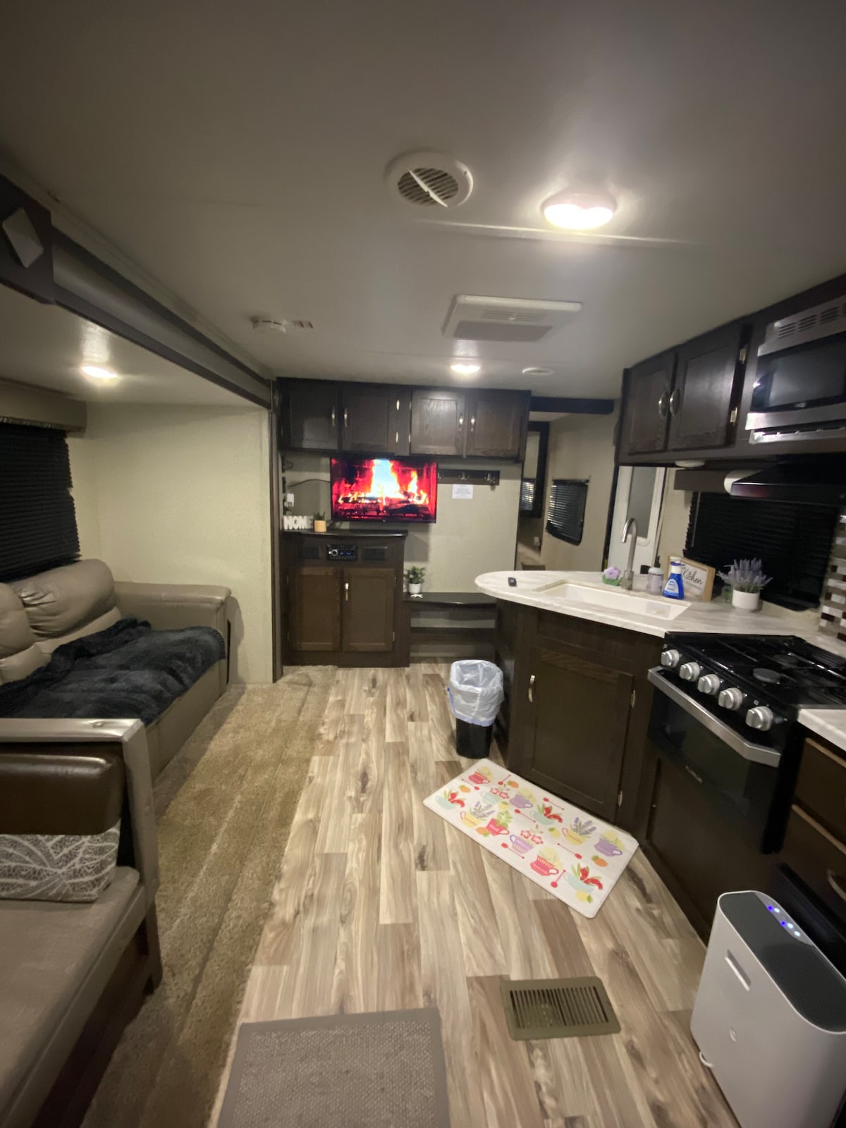 Fifth wheel RV .;) For starters we have cats that will greet you. They love attention. Has a king bed, kitchen with all essential and bathroom provided. Living room has an electric fireplace. There is tv in both living room, bedroom and outside with fire stick The bull frog HOT TUB is awesome. This spring we will be welcoming our new ducks , chickens and piglets. Great views of the Sierra Nevada's.
