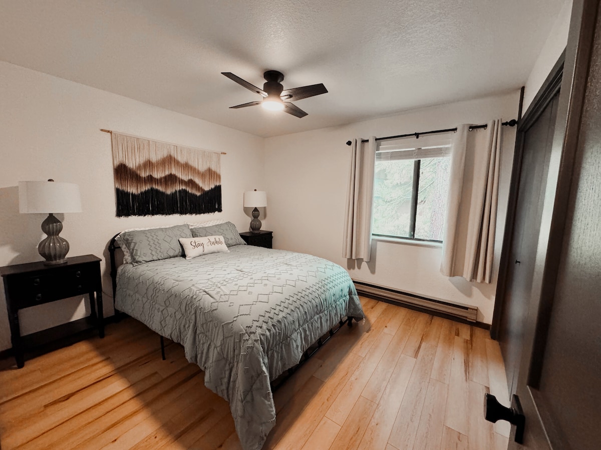 Peaceful 2 bed/1 bath condo centrally located in Shaver at Bretz Mill Condo Complex. Great for families or couples looking for a comfortable getaway. One queen bed located in the bedroom, another queen bed up in the loft (ladder is very steep, please keep in mind for children/elderly), futon also in the loft, and a couch with a queen sleeper bed. This is a very quiet complex, no parties allowed. Just a few minutes away from Shaver Lake and the town of Shaver. Lots of hiking trails and a creek.