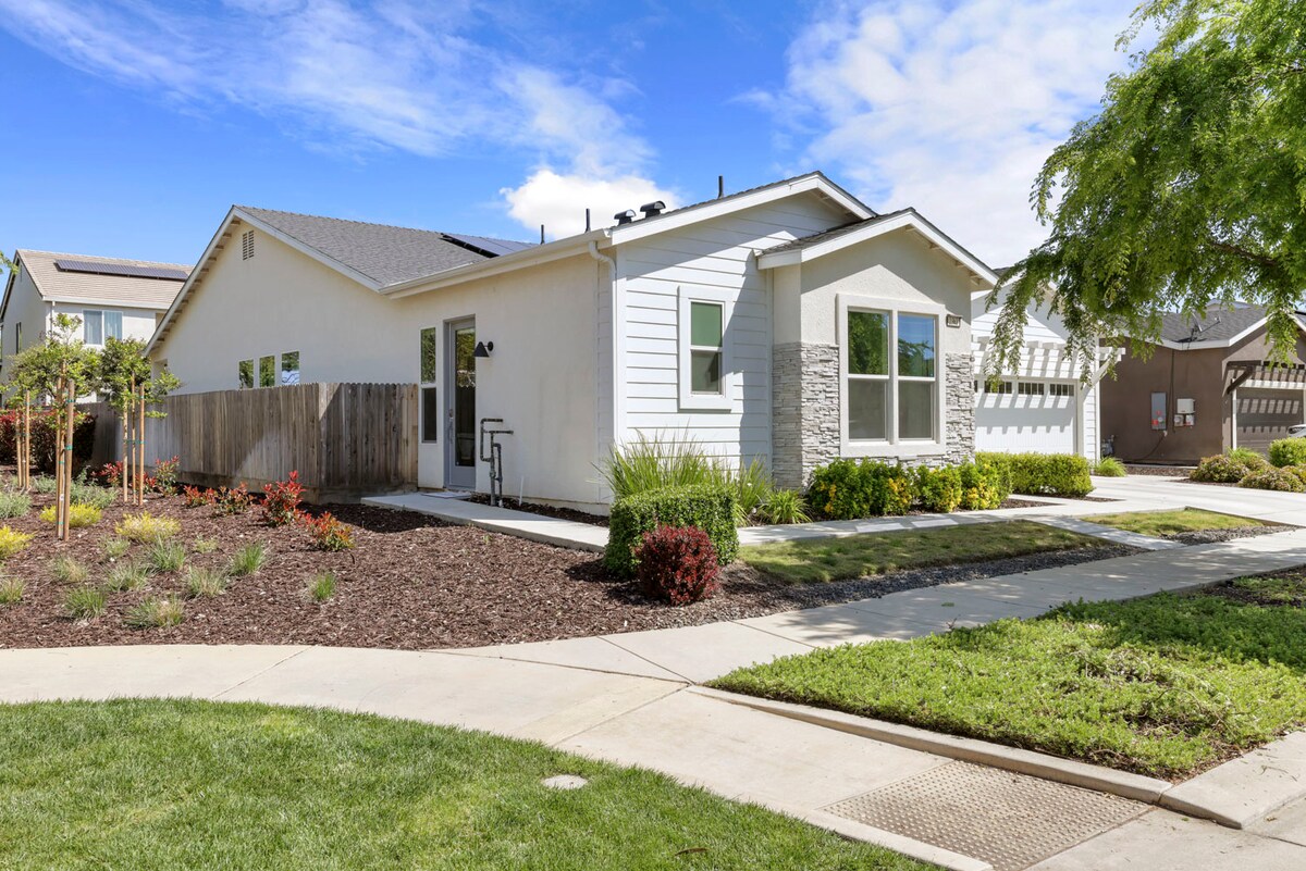 Welcome to our stunning Airbnb in prime North East Fresno! This contemporary hidden gem offers style and comfort. Rest easy on the King memory foam hybrid mattress or the Queen memory foam mattress. Enjoy the fully-equipped designer kitchen, Smart TVs, and free Wi-Fi. Need to work from home? No problem! Find office space here. Restaurants/ Markets within a mile. Woodward Park, just 5 minutes away. Yosemite National Park, 1.15 hours away