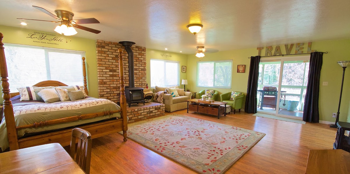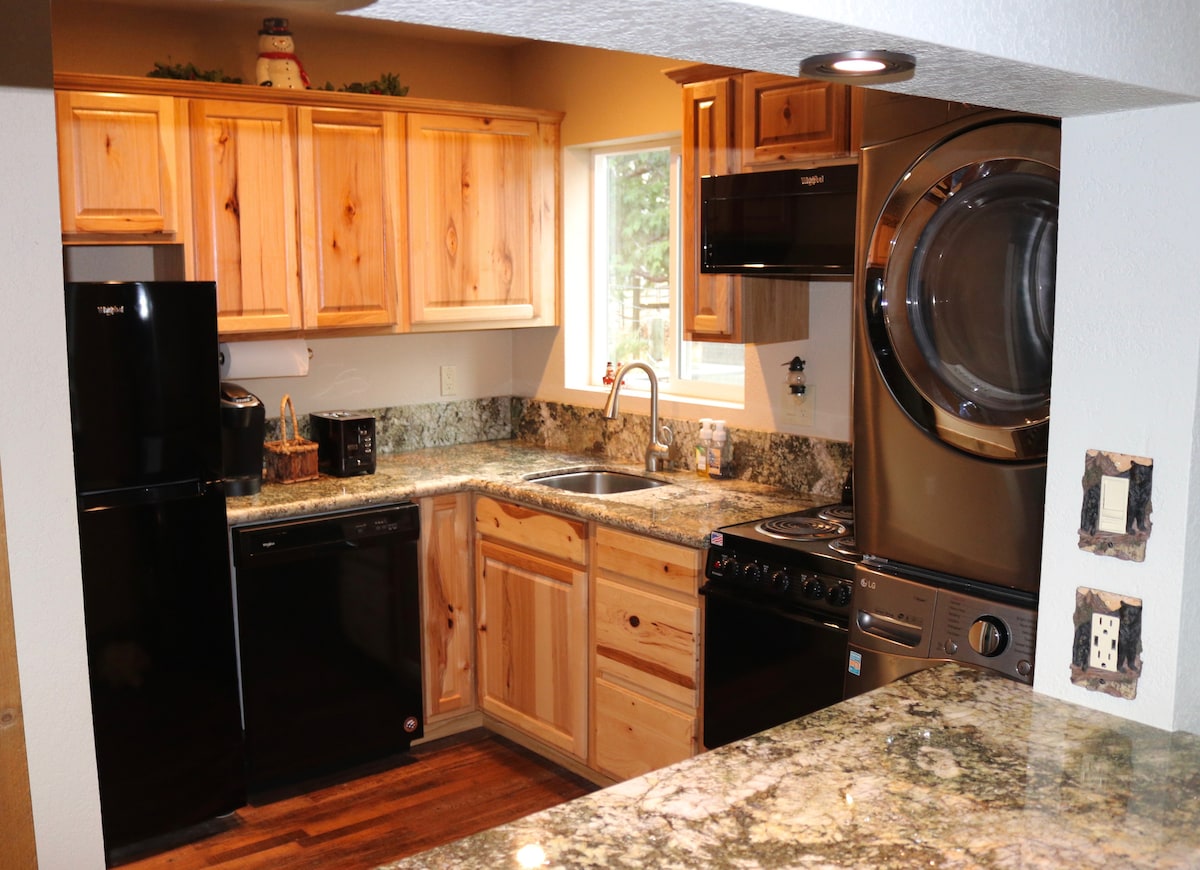 Enjoy a stylish experience in this centrally-located, new constructed guest suite. You have your own entrance, private bedroom, bathroom and kitchenette. As soon as you enter the suite you'll be welcome with a clean scent & cozy home feeling! You’ll enjoy superior rest in the comfortable queen size bed that guests rave about! While this guest room is attached to the main home, there is no direct access so you’ll have complete privacy. Also, no chores at checkout. Just lock up and go