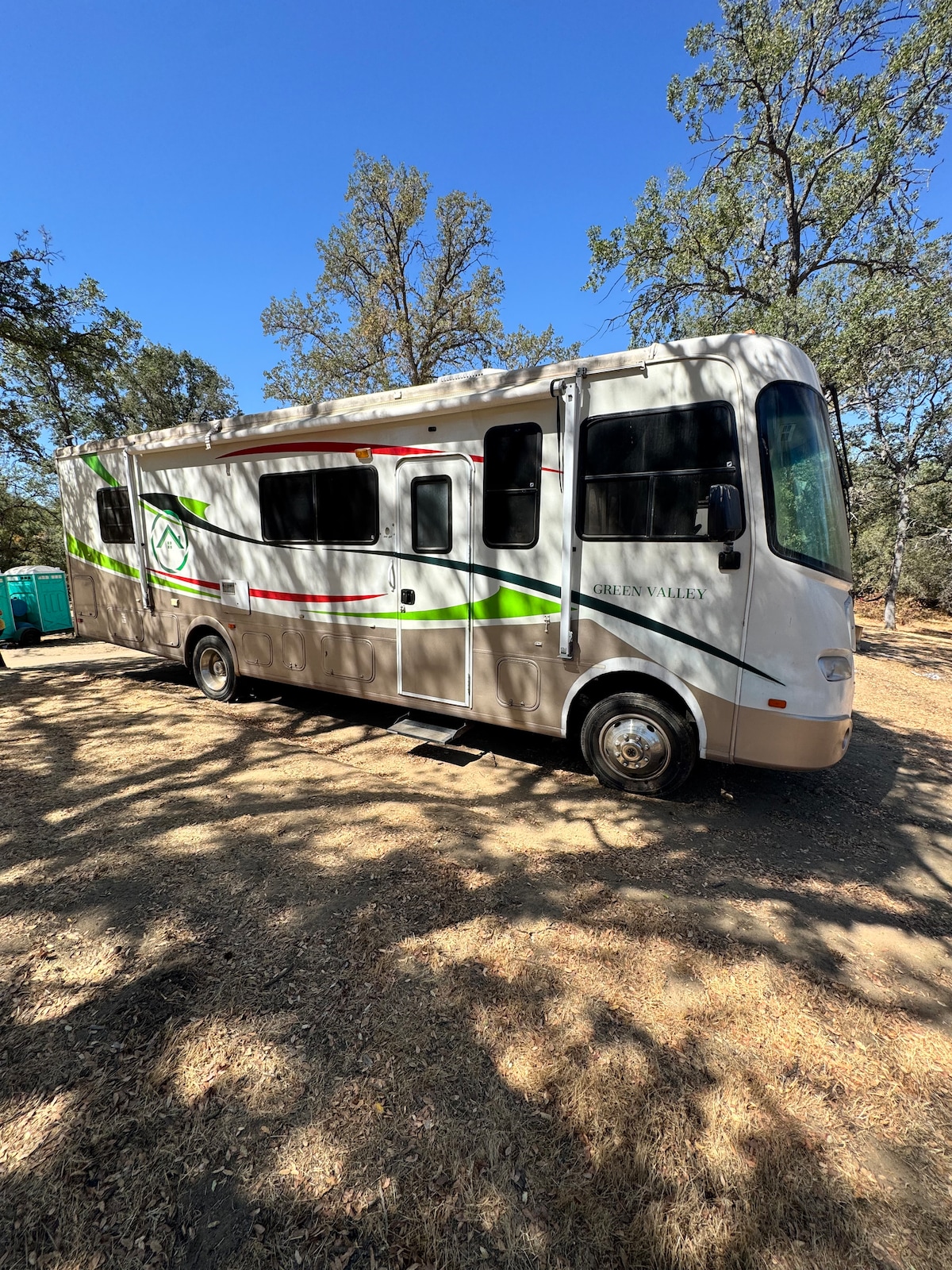 This fully renovated 5th wheel has everything you need, plus No Cleaning Fee! Situated on a hilltop in a quiet foothill neighborhood, you'll have a lovely view of our little valley and mountains. It sports a full kitchen with basics for cooking, RO for purified water, fridge/freezer, coffee maker & , Amazon Fire TV, WIFI, small but well equipped full bathroom, natural latex queen sized bed, AC & heat. Enjoy coffee and fresh eggs, and while you watch the pigs and chickens graze below.