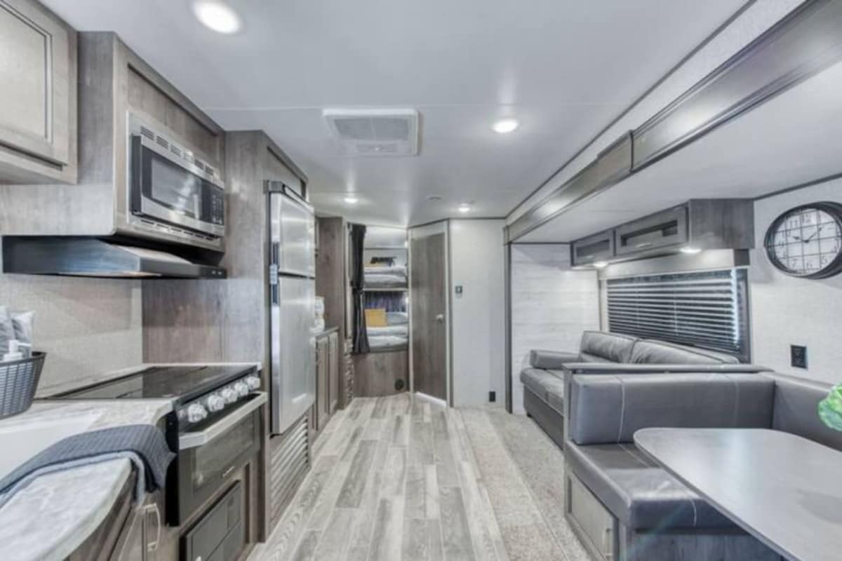 You'll feel rested and refreshed in this private, cozy Winnebago experience. The Space: Private entrance. Dedicated parking spot. Patio space with seating, bbq, fire pit & hot tub. Sleeps four comfortably with 1 Queen bed & 2 twin beds. Shower, microwave, fridge, oven, stove, TV with DVD player & Roku. Easy access to restaurants, coffee & shopping. The Extras: Nespresso machine with pods S'mores kit Bottle of wine Tandem Bike Hosts are on-site and happy to help when needed.