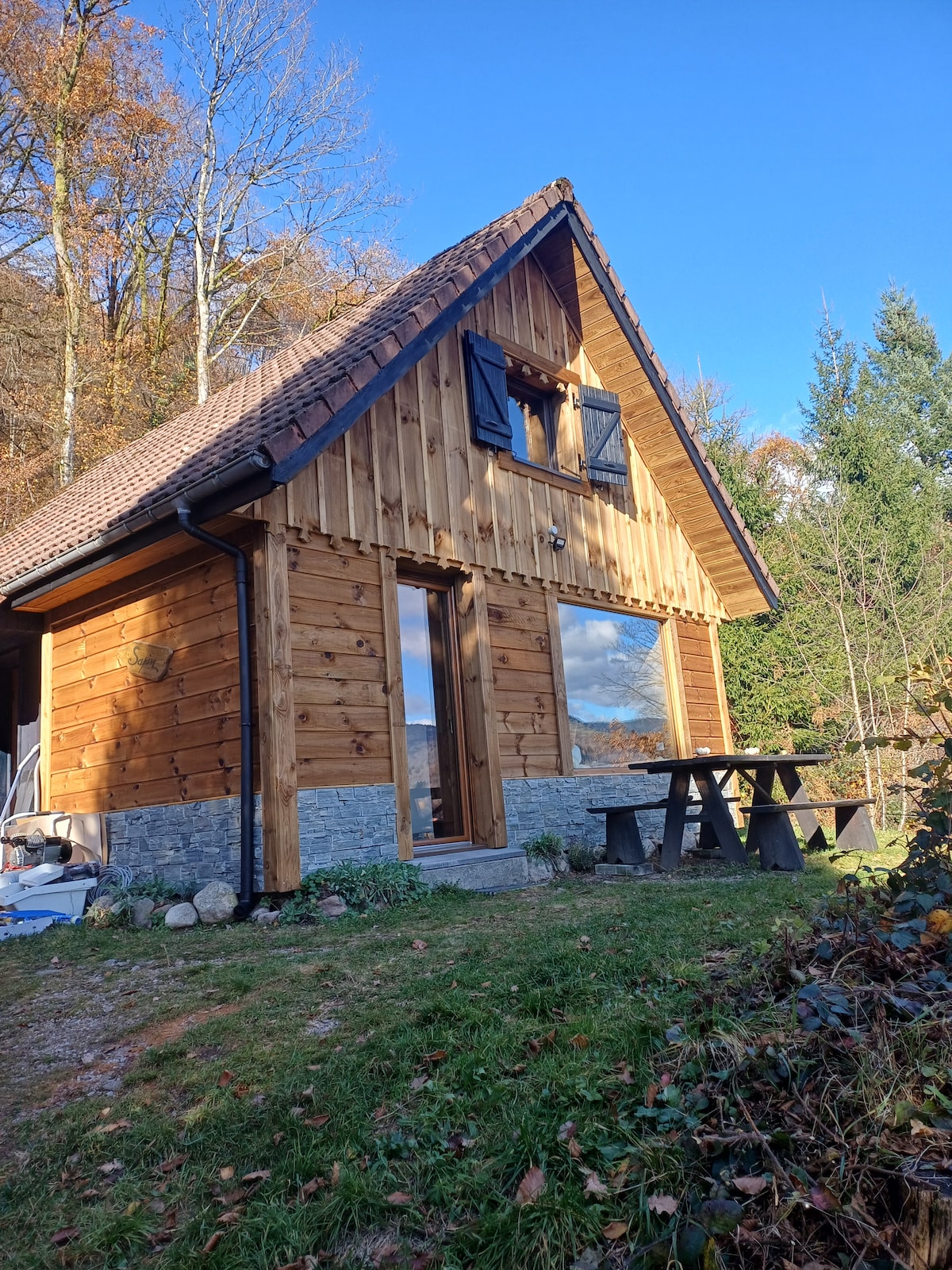 La Cabane de Lulu, nichée sur les hauteurs de Bussang. Ce charment chalet offre un cadre paisible où vous pourrez profiter d'un séjour détente. Entouré d'un parc animalier abritant chèvres et poneys, véritable paradis vert. Vous pourrez vous détendre dans le Hot Tub, tout en admirant la vue. Le chemin d'accès est raide mais entièrement goudronné, vous pourrez vous garez juste devant le chalet. Veuillez noter qu'en hiver, il faut se garer à 80 m de l'entrée en raison du risque de verglas.