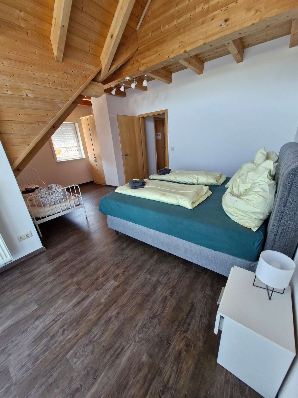 Newly refurbished premium top floor flat near the historic city centre of Hilpoltstein. It is close to parks, lakes, supermarkets, restaurants and dining. Only a short walk away from the world famous Challenge Roth triathlon. 20 minutes drive to Nuremberg. Our place is very cosy, it is good for couples, solo adventurers, business travellers, and families (with kids). We offer a welcome pack to our guests, coffee, tea and biscuits. You will love our place.