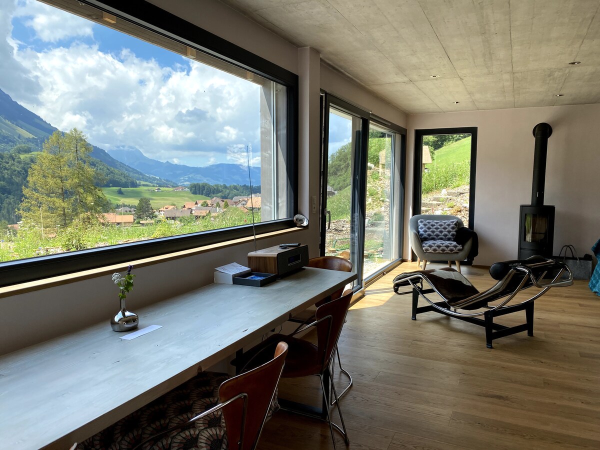 格吕耶尔(Gruyère)独特全景现代度假木屋