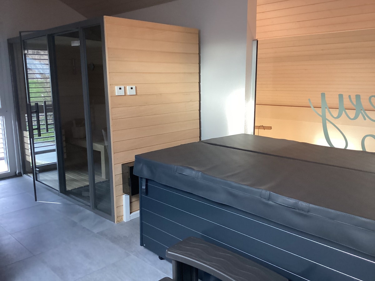 Le logement est entièrement indépendant avec entrée privée et comprend : - Une chambre confortable - Une salle de bain moderne - Un coin pratique pour cuisiner - Une grande terrasse avec spa privé (en supplément) et vue imprenable sur les montagnes Parking gratuit juste devant pour votre confort. Situé dans un cadre paisible, parfait pour se ressourcer pleinement tout en profitant des nombreuses activités et balades de la région. À quelques pas du logement : une épicerie et une boulangerie.