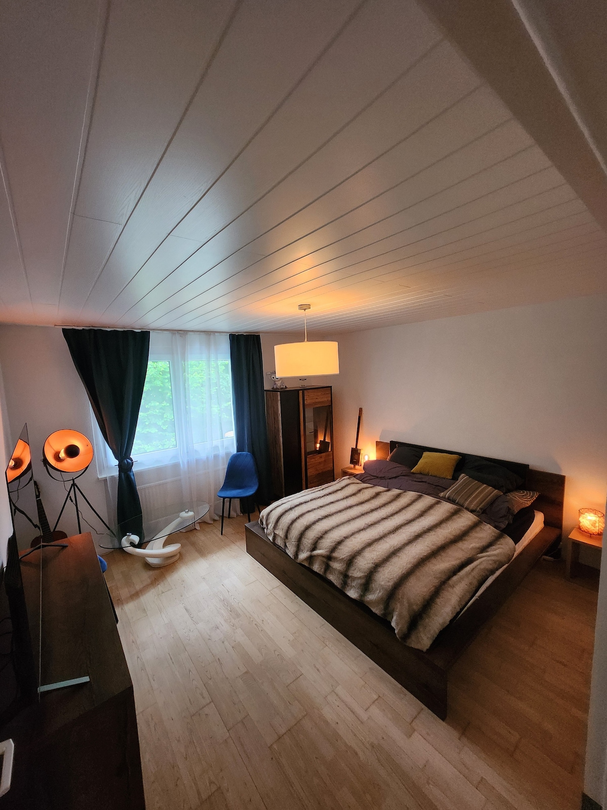 Beautiful penthouse for wonderful family holidays, or a great time with friends. The penthouse apartment has 4 bedrooms. The residence has a seasonal pool and a playground, It is very well located, in a calm, residential village, at a 2 minute walking distance from the forest, with good access by car and public transport (bus stop in front of the building). Murten is 10 minutes away, and Fribourg and Bern are about 20 minutes away.