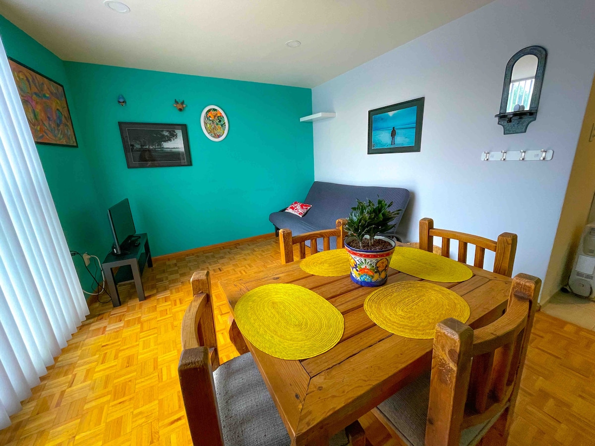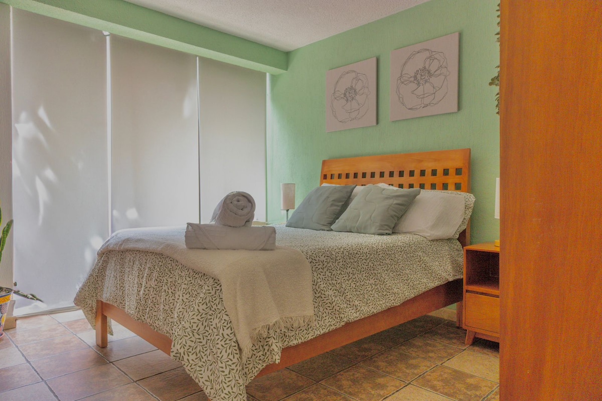 Bienvenide a mi casa! We have for you a charming little apartment in the center of Coyoacán. It has everything you need for a pleasant stay: TV, WiFi, Kitchen, Toiletries and the best vibe. We are located on a peaceful/quiet street. English, Spanish, French, and Italian spoken Located close to UNAM & Hospital de la Ceguera and Estadio Azteca.