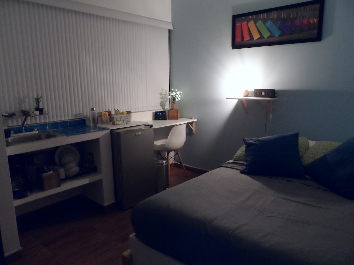 One bedroom apartment within a superbly converted colonial style Mexican house from the 1940s next to the 5 stars Camino Real Hotel, well located between Chapultepec Park/ Polanco, Roma & Condesa. King Size bed, one bathroom and spacious living room / open plan Kitchen. Main WiFi plus an Emergency Back Up Wifi Free Breakfast at my Cafe around the corner (Except Sundays and Bank Holidays. Cafe closed!) . Free weekly cleaning from 2 weeks or longer stays. Free use of Washing & Drying Machines.