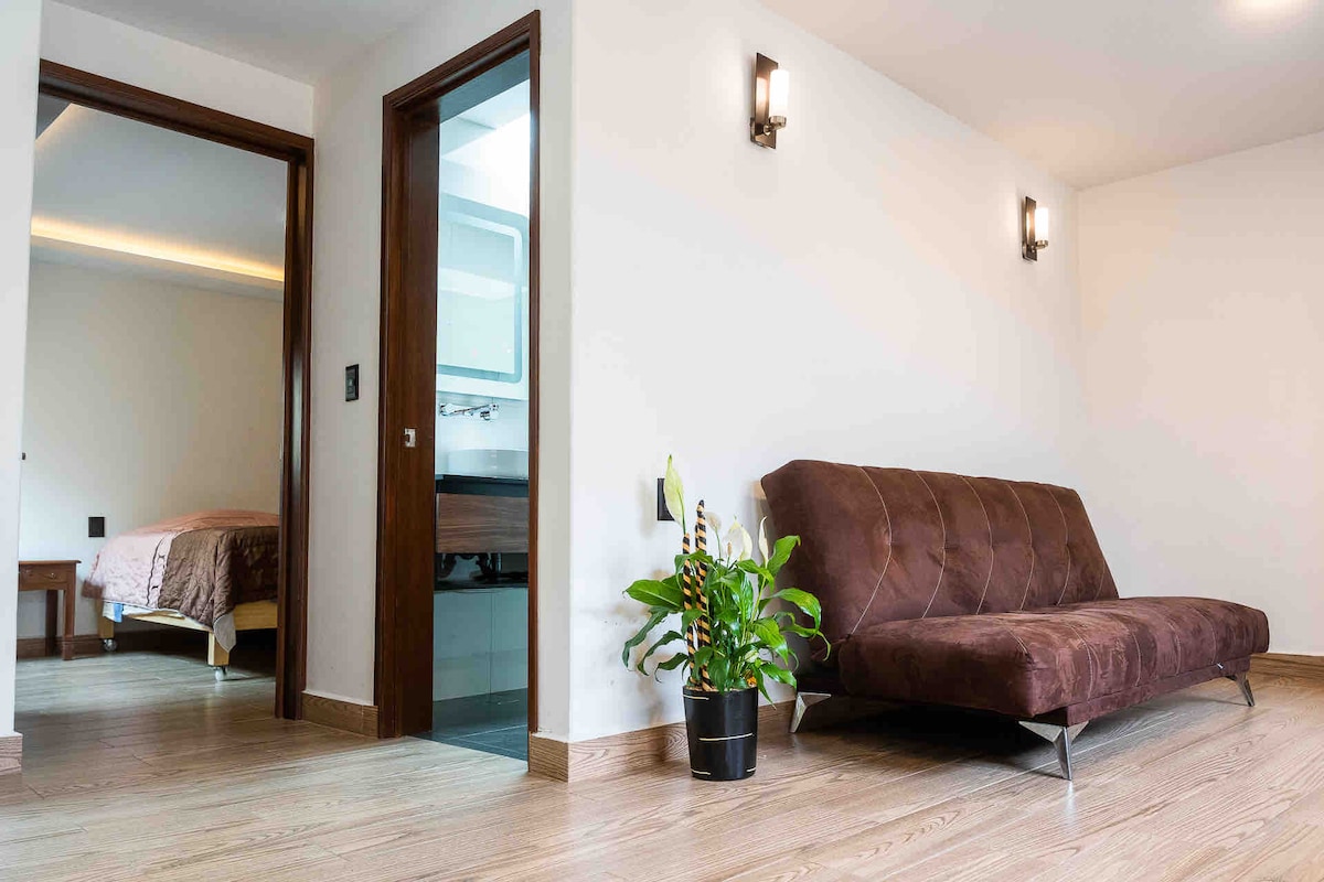 Suite tipo estudio de +- 20m² con acceso independiente, ideal para viajes de trabajo o turismo. La excelente ubicación te permitirá descansar tranquilamente, además estás a unos minutos de las principales atracciones de la ciudad. A 1km de Reforma, Bosque de Chapultepec, Museo de Antropología, Museo de Arte Moderno, Museo Tamayo, Zoológico de Chapultepec, Polanco. A 2km de El Ángel y a 5km de el Centro Histórico.