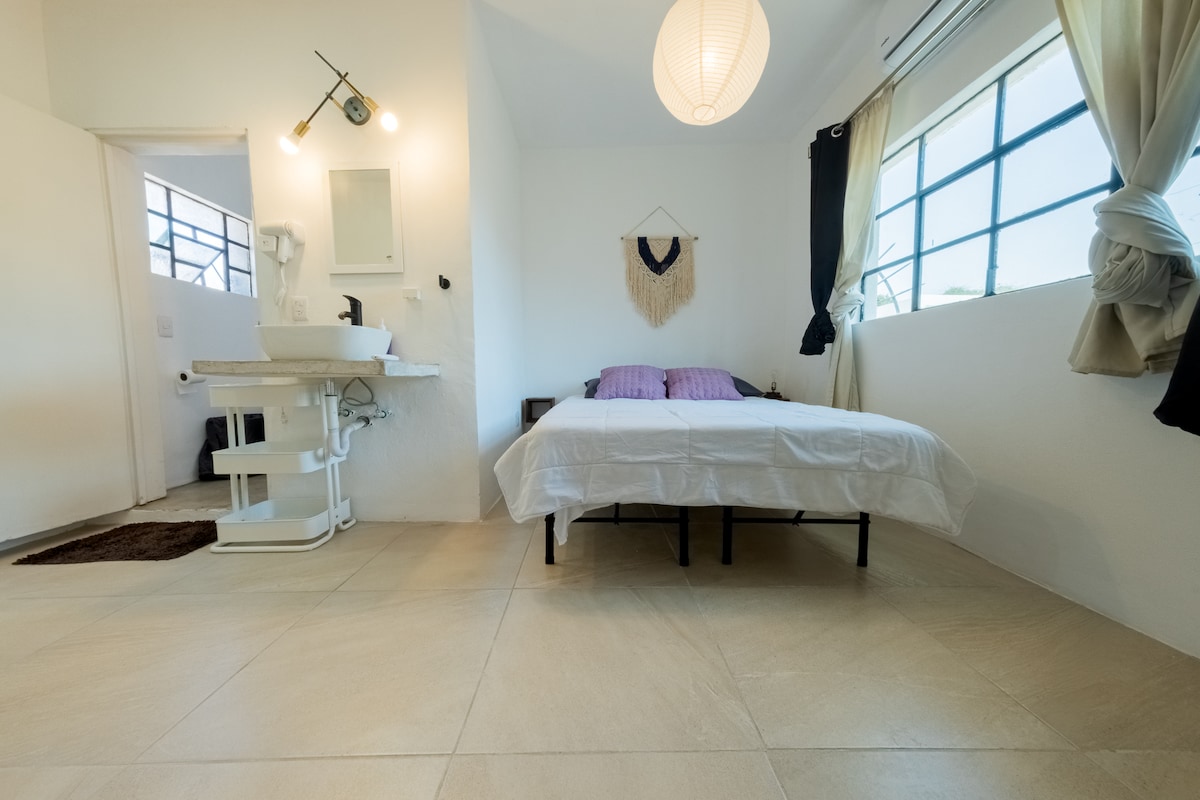 This space is for travelers who are looking for design, beauty, art, inspiration, comfort, and working remotely in a great area. What does it come with? - WIFI 100MB - Equipped kitchenette - Black-out curtains - Comfy beds (Quality linens) - Amazing water pressure in shower - Local - biodegradable - cruelty free toiletries - Drinking filtered water - Elevator - COVID-19 cleaning & sanitizing protocols - Good vibes