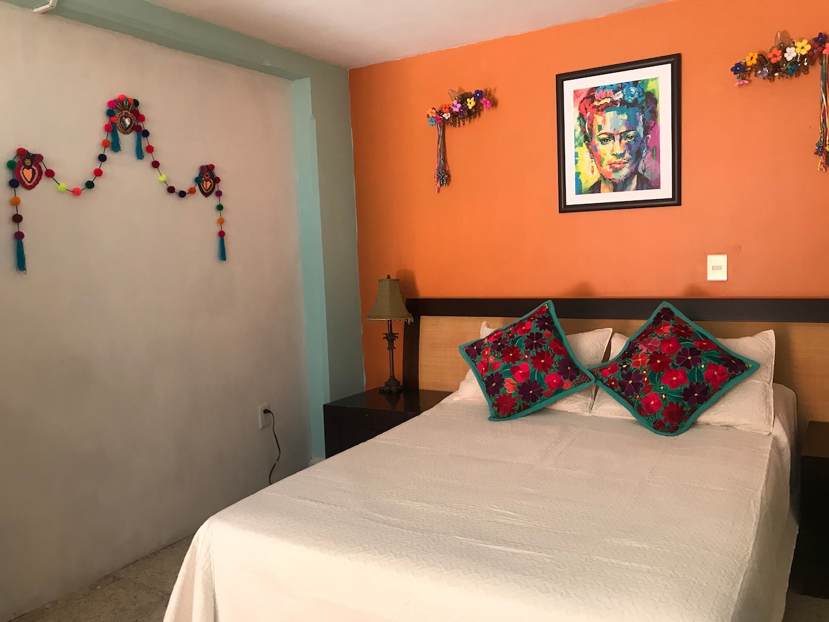This charming and colorful space has a private patio surrounded by plants and greenery, ideal for solo travelers or couples. It features a full-size bed, a cozy seating area, a desk, a kitchen, a TV, and fast Wi-Fi. Enjoy natural light, thoughtful design, and a peaceful vibe. Located in Escandón, a quiet and authentic neighborhood with easy access to Condesa, Roma, and local cafés, it is great for remote work or cultural escapes.