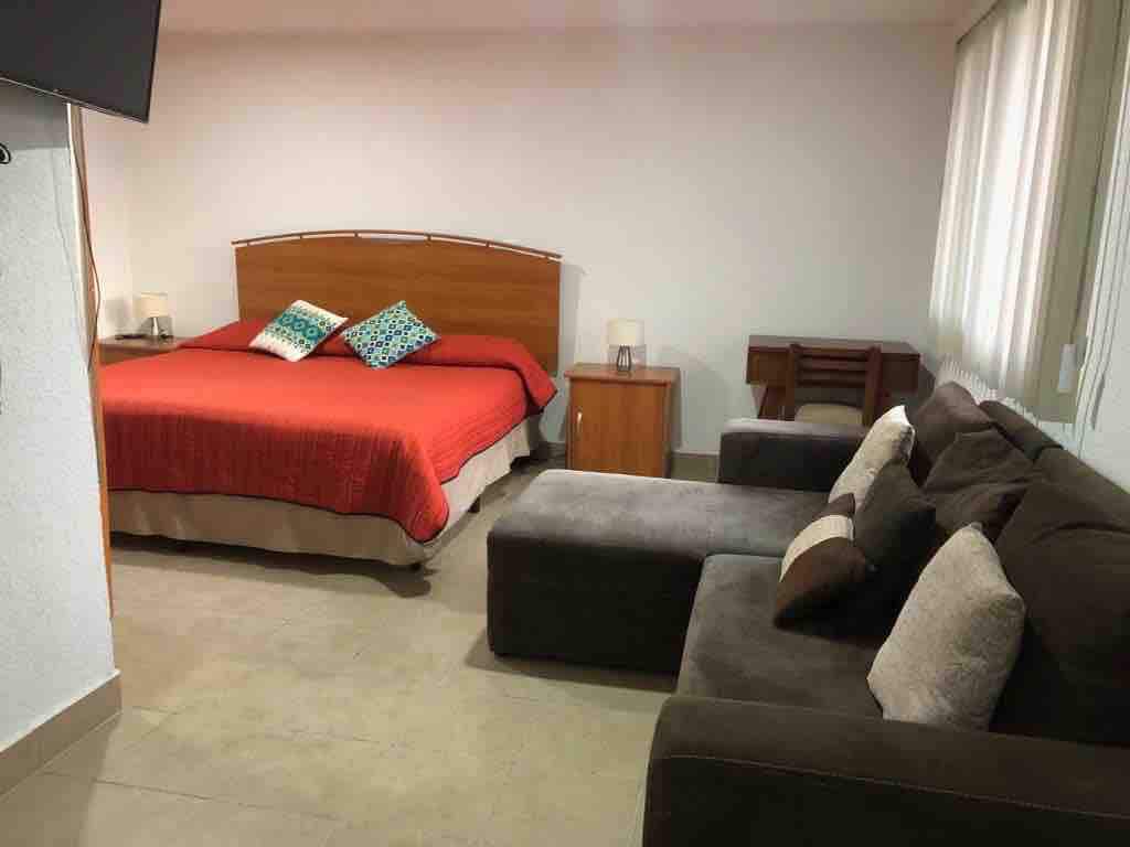 Mini departamento tipo estudio 100% privado con estacionamiento y entrada independiente, baño privado, sin tarja ni estufa, por ende sin platos ni cubiertos, si tiene mesa y sillas, es como un cuarto de hotel. Se encuentra en zona residencial, muy cerca de Estudios Churubusco, 10 min centro coyoacán, a 15 min Foro Sol, 20 min Aeropuerto, 30 min centro CDMX, vías de acceso rápidas. NO MASCOTAS