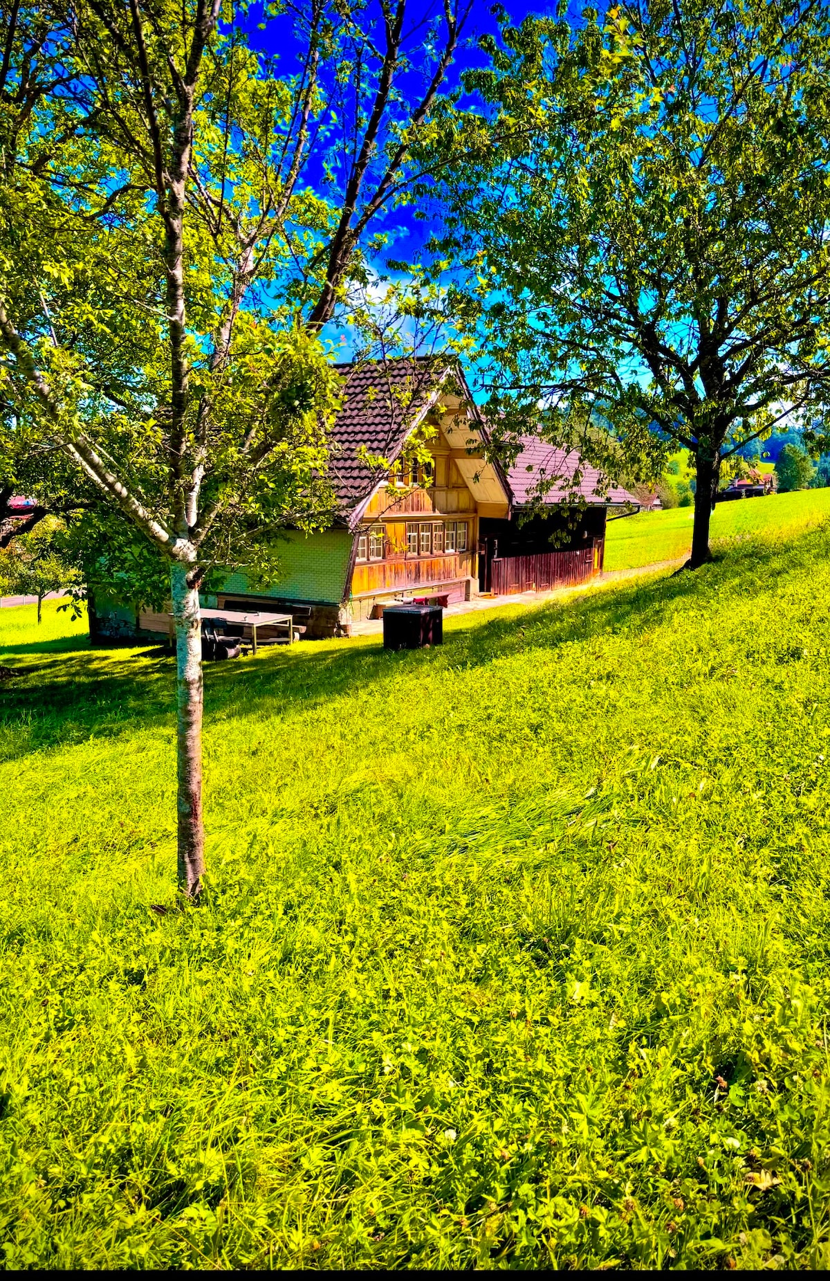 Lehne dich zurück und entspanne – in dieser ruhigen, stilvollen Unterkunft mit einer Wohnfläche von rund 125m2 inmitten der Natur. Deine exklusive Auszeit bei 360grad Weitsicht Säntis/Bodensee und doch so nah zu Attraktionen wie St.Gallen/Appenzell. Dieses 200jährige Appenzellerhaus thront hoch über Herisau AR und wird von seinen Besitzern liebevoll „GöttiFritz“ genannt. Authentisch erstrahlt es in einer traumhaften Berg- und Hügelkulisse – ein wahrer Rückzugsort für die Seele.