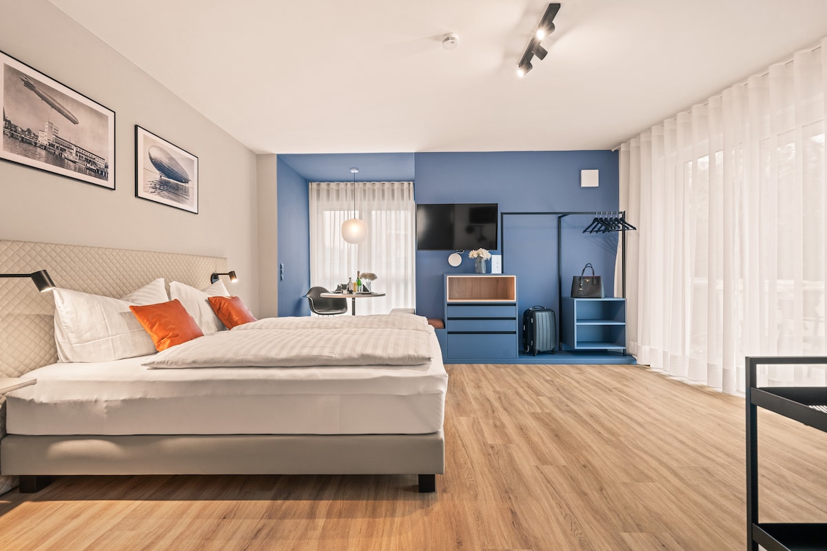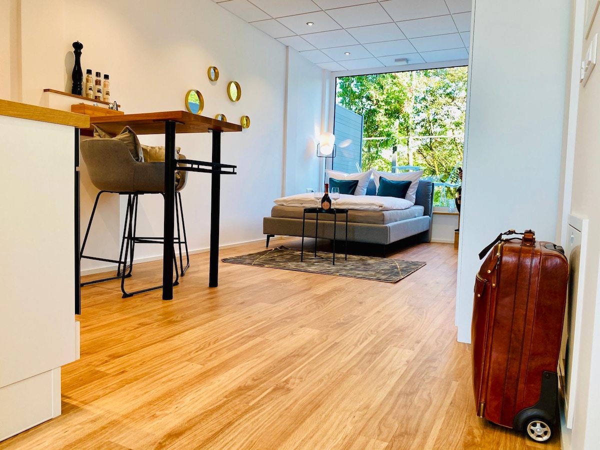 Das moderne Studio Apartment bei Brera Meckenbeuren-Friedrichshafen bietet eine komfortable Unterkunft für Geschäftsreisende und Urlaubsgäste. Es verfügt über ein gemütliches Doppelbett, einen funktionalen Arbeitsbereich sowie kostenfreies WLAN und einen Flachbild-TV. Das moderne Badezimmer ist mit Dusche, WC und frischen Handtüchern ausgestattet. Dank der ruhigen Lage und der guten Anbindung sind der Bodensee, Friedrichshafen und Ravensburg schnell erreichbar.
