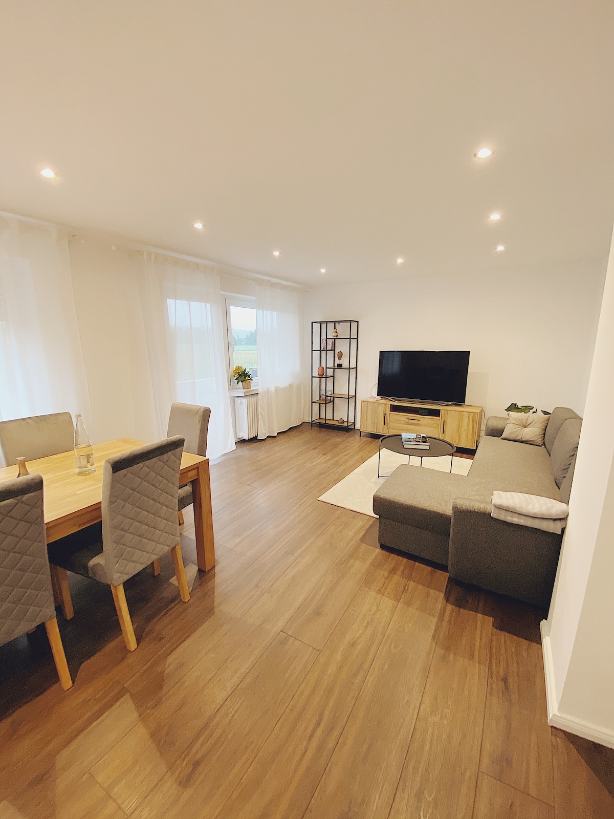 Unsere moderne Wohnung wirkt durch den großzügigen Wohn- & Essbereich mit der großen Fensterfront hell & freundlich. Ob der Kaffee am Morgen oder Vino am Abend, der Balkon lädt zum Verweilen ein. Bei schlechtem Wetter könnt ihr es euch auf der Couch gemütlich machen & Fernseher schauen. Ein Amazon Fire TV Stick ist auch vorhanden, somit könnt ihr auch auf eure Streaming-Dienste zugreifen. Die Küche ist voll ausgestattet.